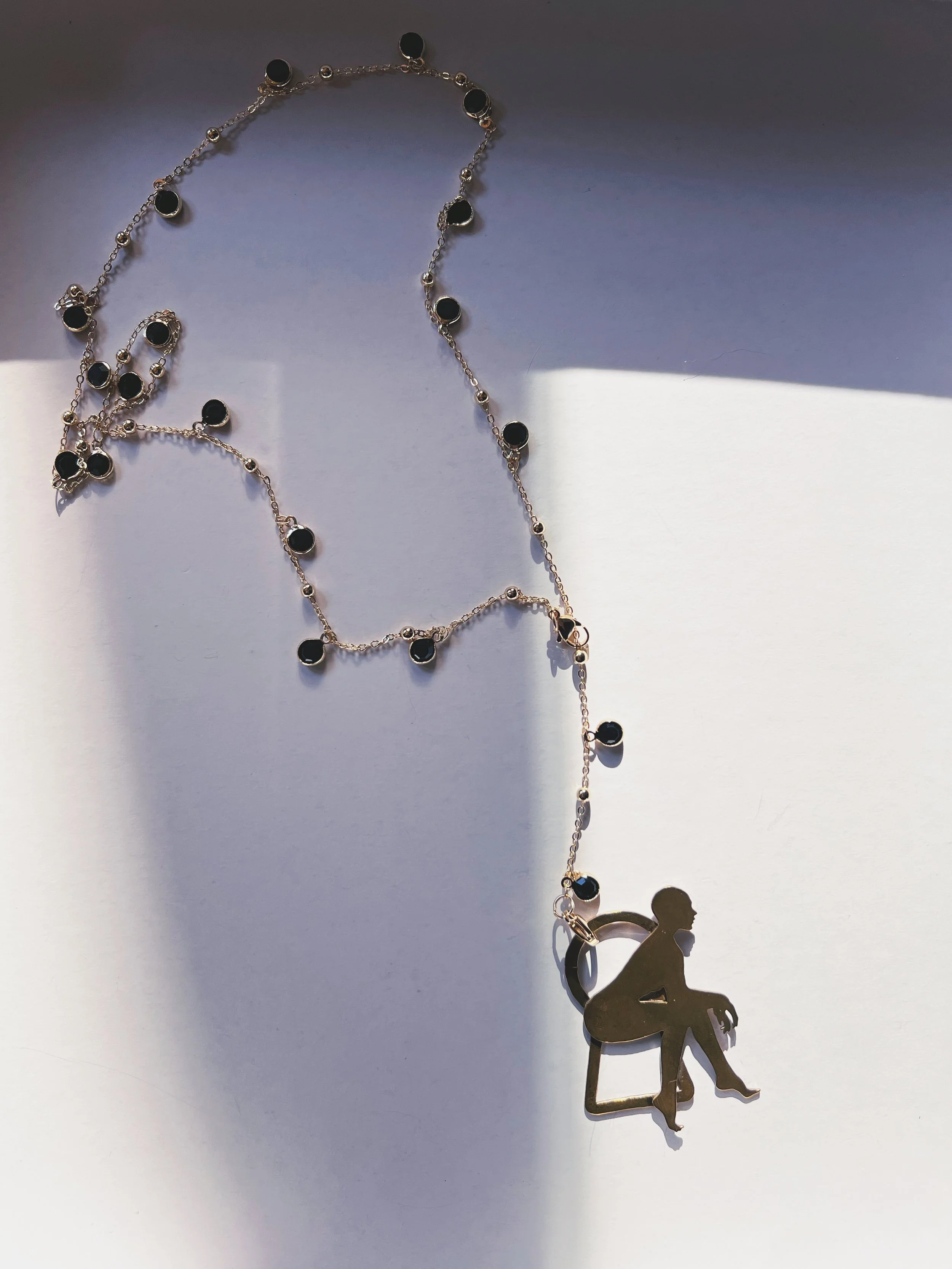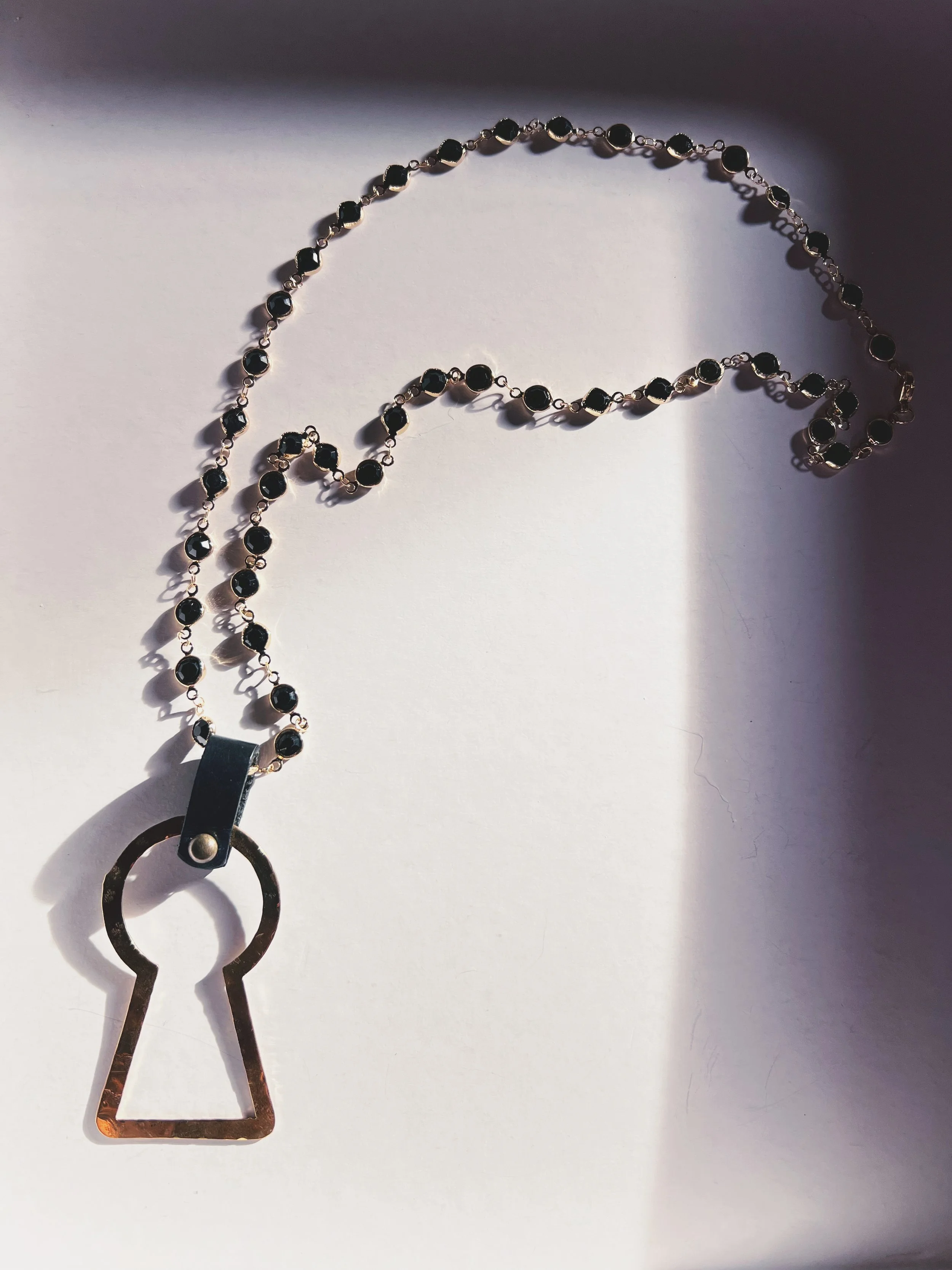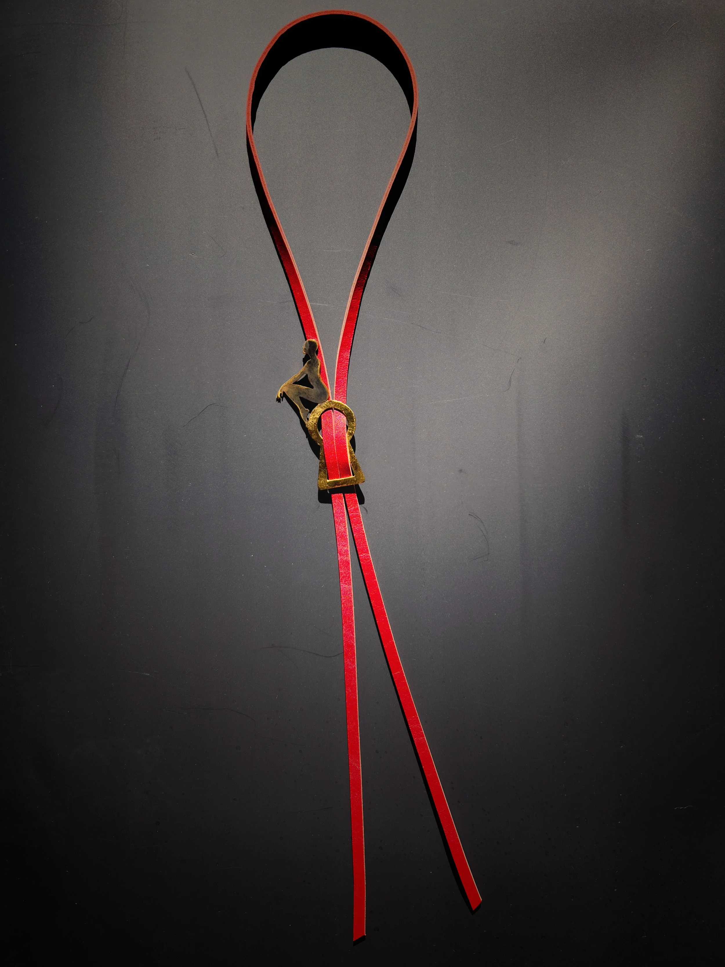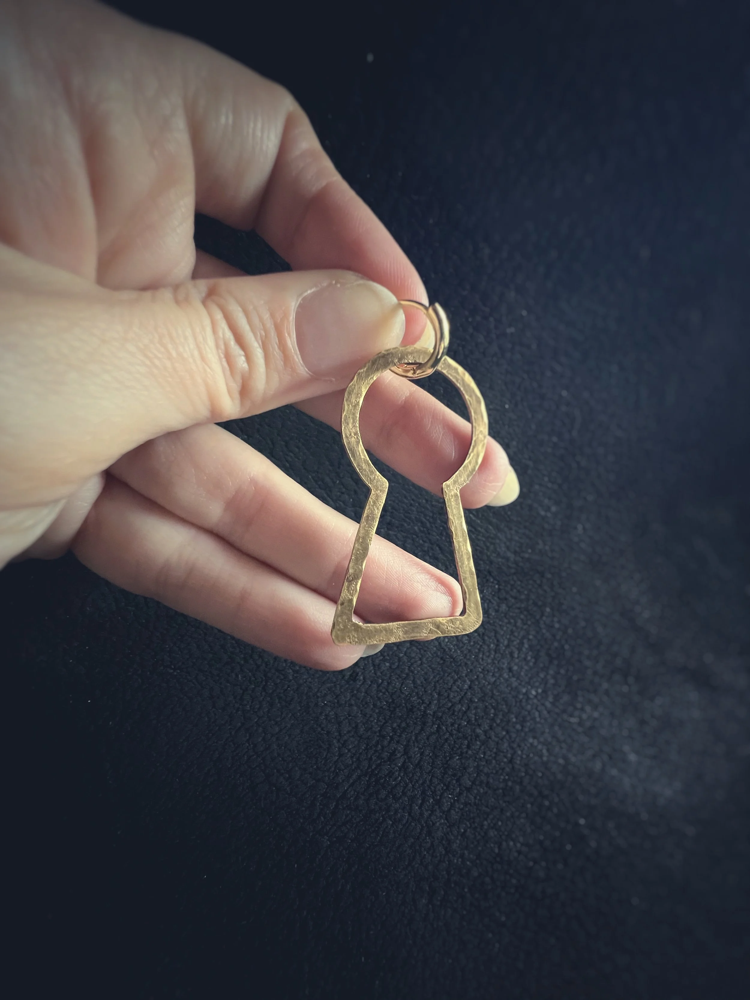 Each figure is hand-pierced, refined, and set into a composition of brass, silver, upcycled leather or dark crystals.