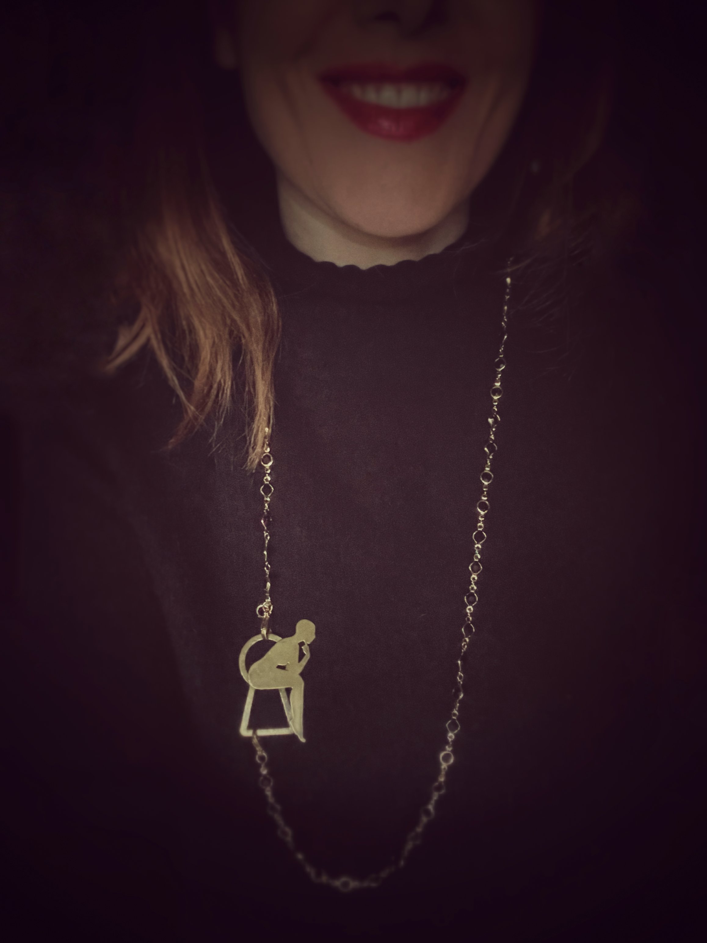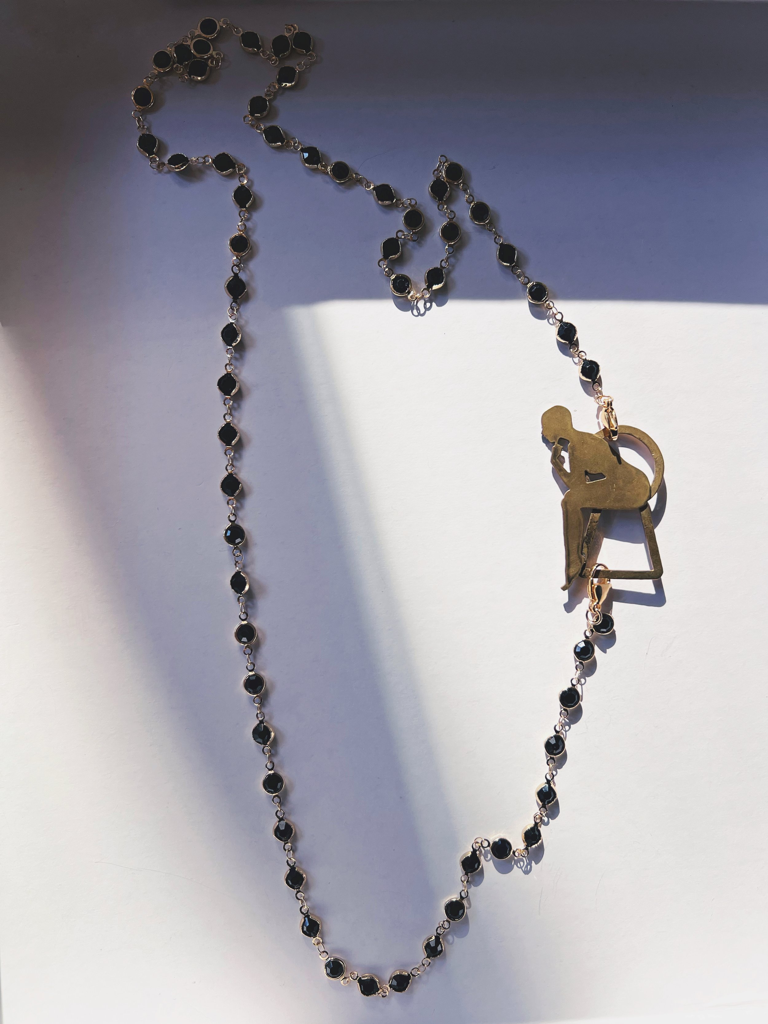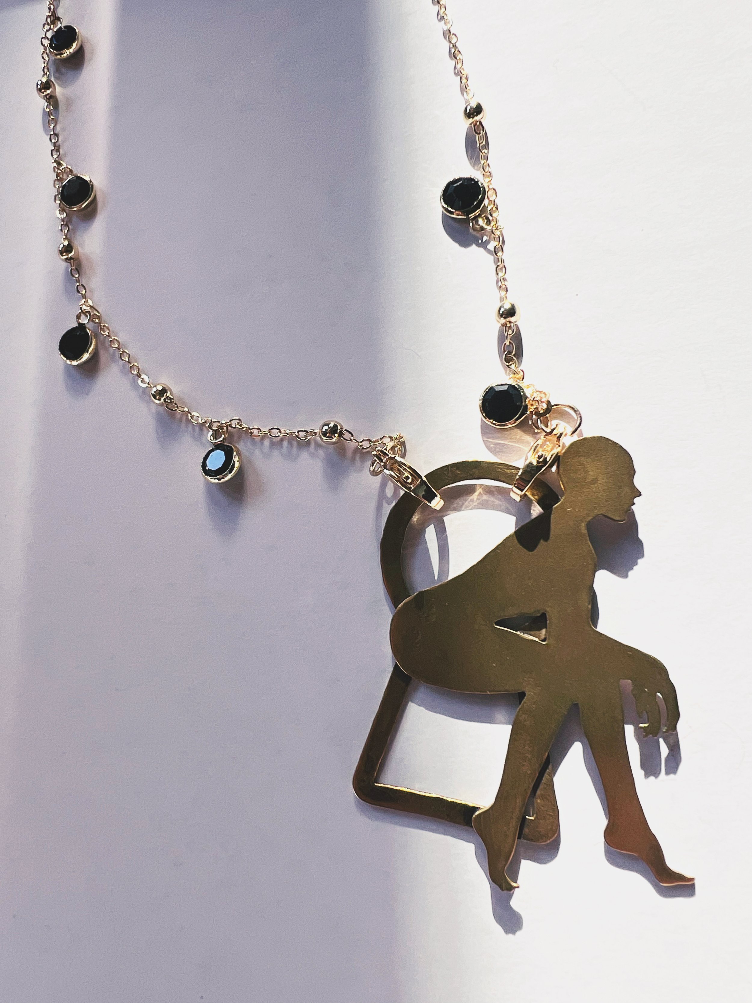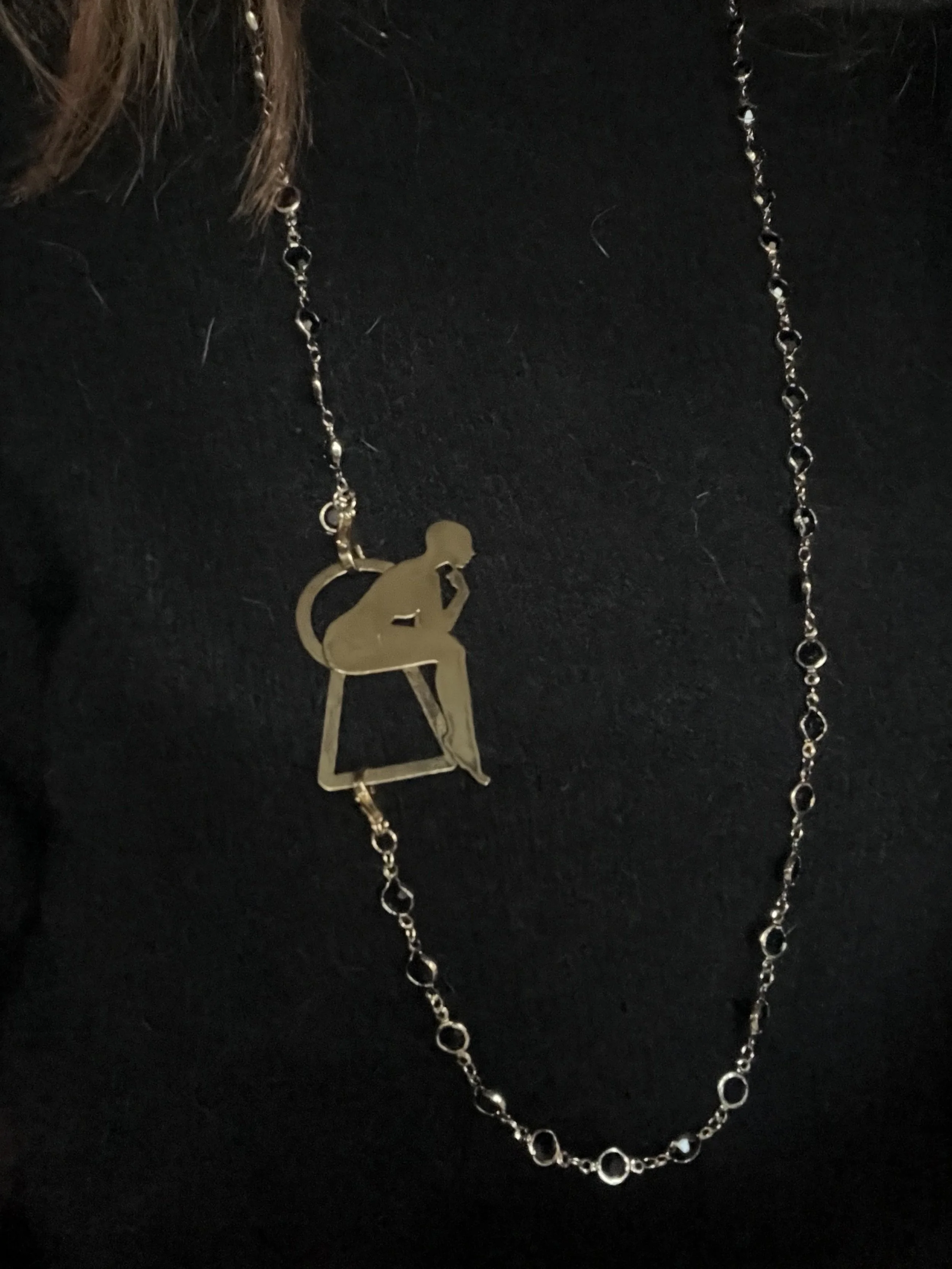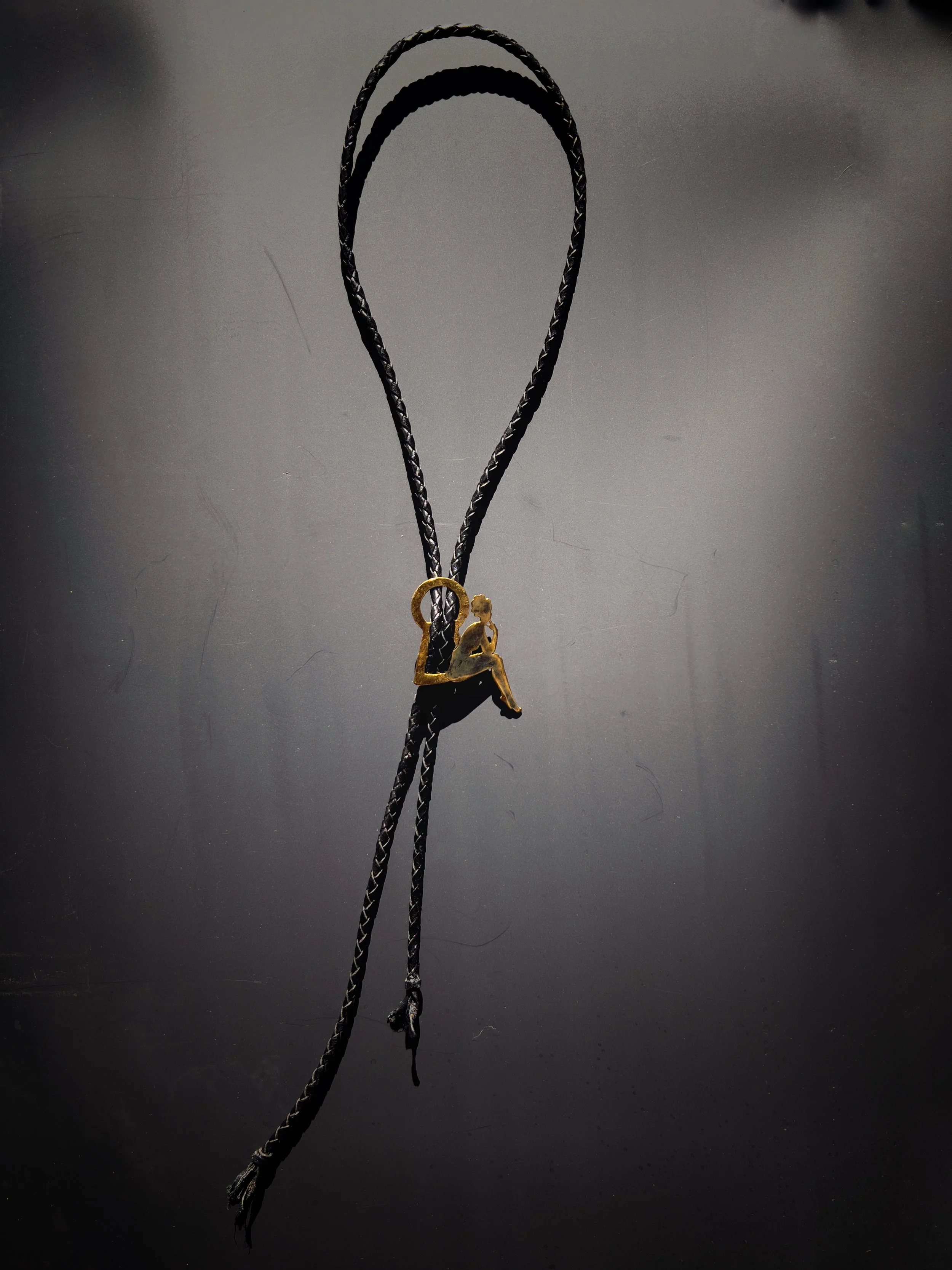 Each figure is hand-pierced, refined, and set into a composition of brass, silver, upcycled leather or dark crystals.